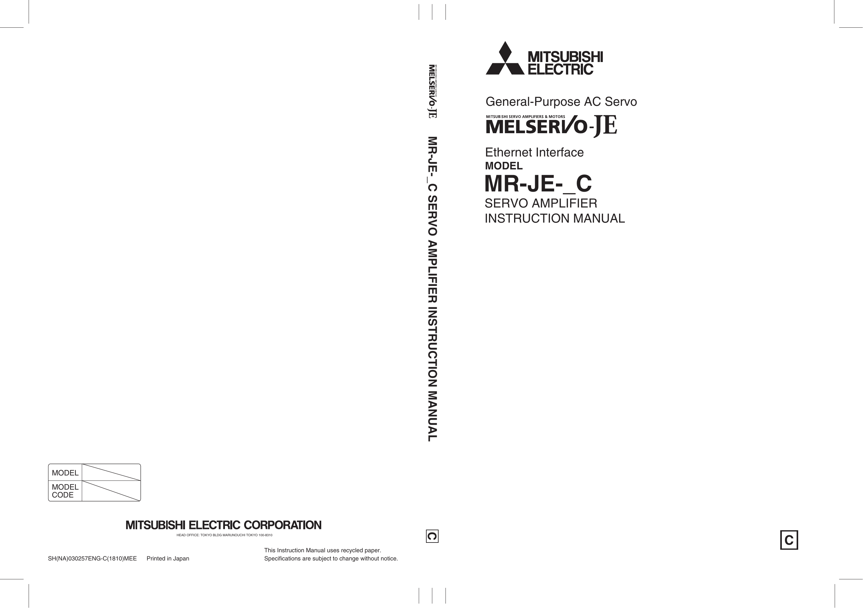 Mitsubishi Electric Mr Je C Servo Amplifier Instruction Manual Manualzz